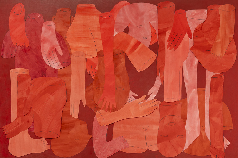 La pieza Cuerpos-carne (guerra) gran collage realizado en 2023 por la artista utilizando por primer primera vez en esa fecha la técnica de los papeles silueteados y pintados, se postula como una declaración de intenciones sobre lo que podemos evitar con nuestros pequeños gestos cotidianos. Intentemos reescribir la Macrohistoria desde la Microhistoria. Evitemos más Guernicas.